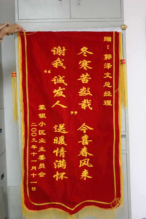 蒙銀小區(qū)業(yè)主委員會(huì)贈(zèng)錦旗
