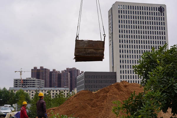 9月24日上午,筆者遠(yuǎn)遠(yuǎn)看到一吊車正將坑內(nèi)挖掘的土方吊起,走近作業(yè)坑,看到坑內(nèi)小型挖掘機(jī)正在開挖土方,還有2名施工人員正在進(jìn)行鋼筋網(wǎng)片的焊接。