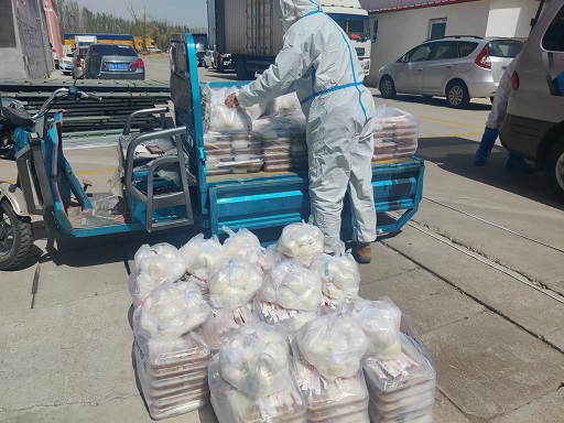 還未喘息,園區(qū)又接到供電部門通知,惱包園區(qū)高壓干線因故障維修,于21日下午14:00-18:00停電,為保障封控人員正常就餐需求,園區(qū)緊急調(diào)配移動柴油發(fā)電機為園區(qū)餐廳提供電力保障,園區(qū)后勤保障組工作人員順利完成當日各封控區(qū)域集中隔離人員當日三餐共2265份的配送工作。